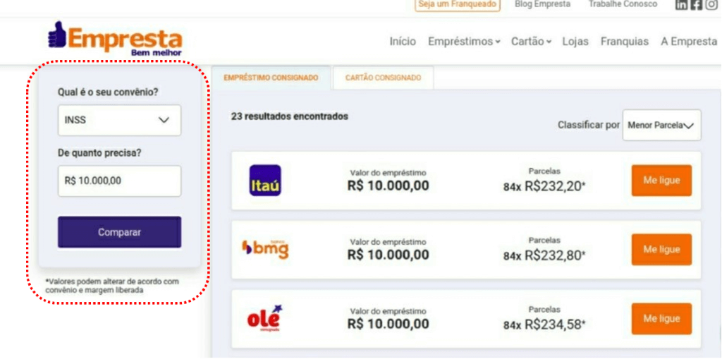 A Empresta desenvolveu uma ferramenta simples que te ajuda a encontrar a melhor oferta para você! Além de comparar as ofertas dos principais bancos, você também poderá conversar com um dos atendentes da Empresta, que irá te ajudar durante todo o processo.